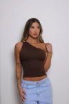 REGATA COM DECOTE ARREDONDADO, SUAS ALÇAS POSSUEM ELÁSTICO PARA DAR FIRMEZA AO COLO. OS PASSANTES DE METAL TRAZEM UM CHARME DELICADO, DESTACANDO A PEÇA. ESTA PEÇA É VERSÁTIL E PODE SER UTILIZADA TANTO EM LOOKS CASUAIS, QUANTO FORMAIS. A REGATA ANALU É DUPLA NA FRENTE E COSTAS E POSSUI ACABAMENTO EMBUTIDO, TRAZENDO UM VISUAL CLEAN PARA A PEÇA.